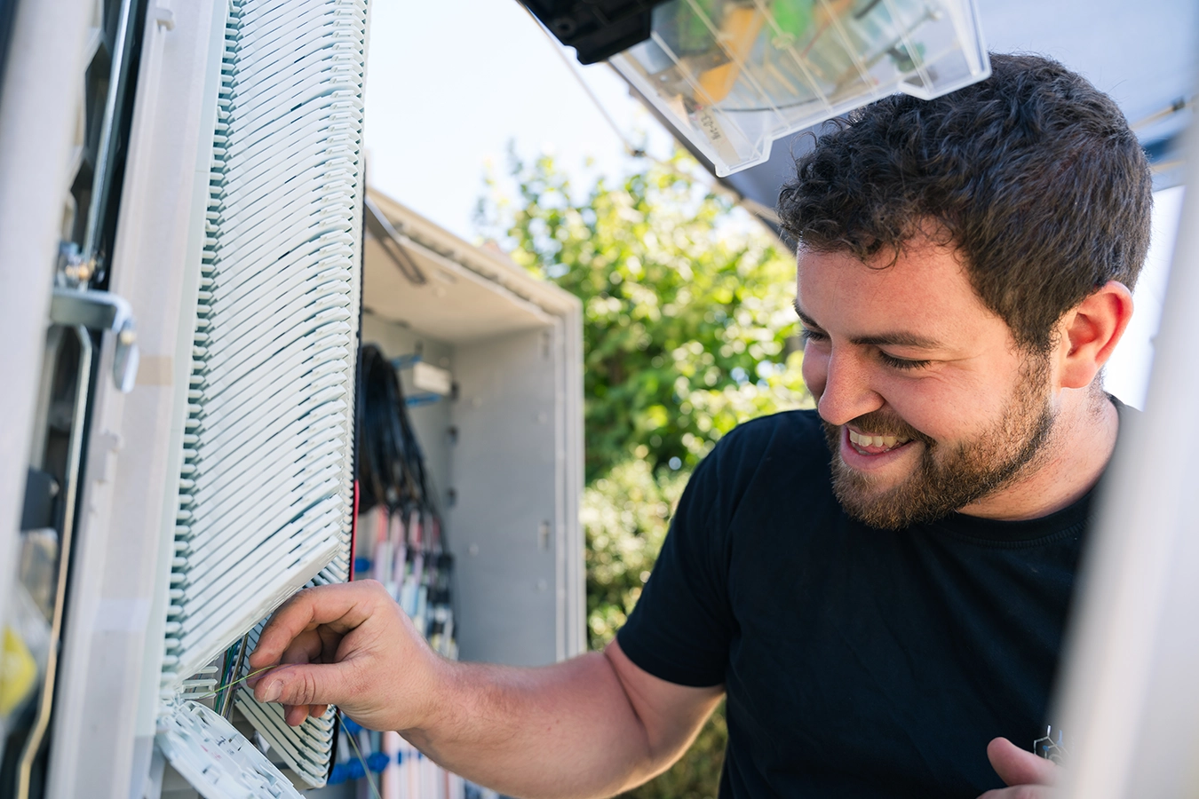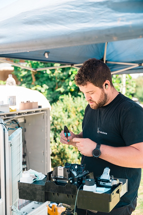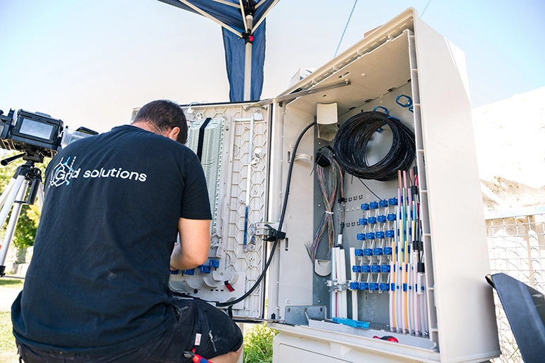 Nach Planung und Kabelverlegung werden Netzverteiler gespleißt, Verbindungen getestet und das Netz freigegeben.